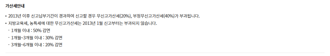 ※ 농어촌특별세: 취득세를 납부할 때, 취득세액의 10%를 추가로 납부해야 합니다. 지방교육세: 등록세를 납부할 때, 등록세액의 20%를 추가로 납부해야 합니다.