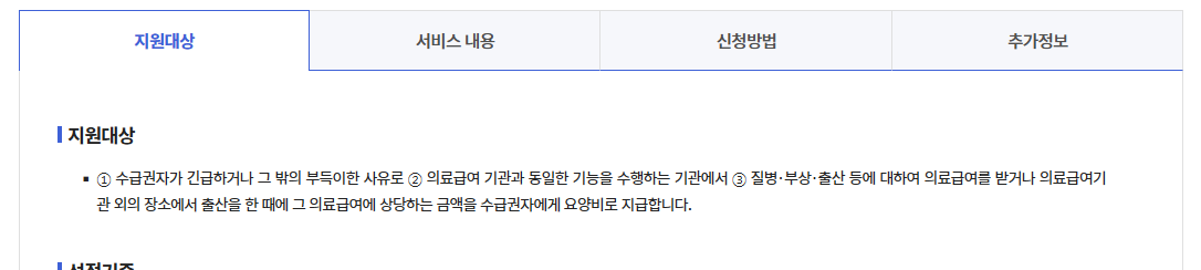 의료급여기관을 이용하지 못하거나 해당 기관이 없는 지역에서 질병, 부상, 출산(사산 포함)의 치료를 받은 경우, 의료급여비용에 해당하는 금액이 지원됩니다.