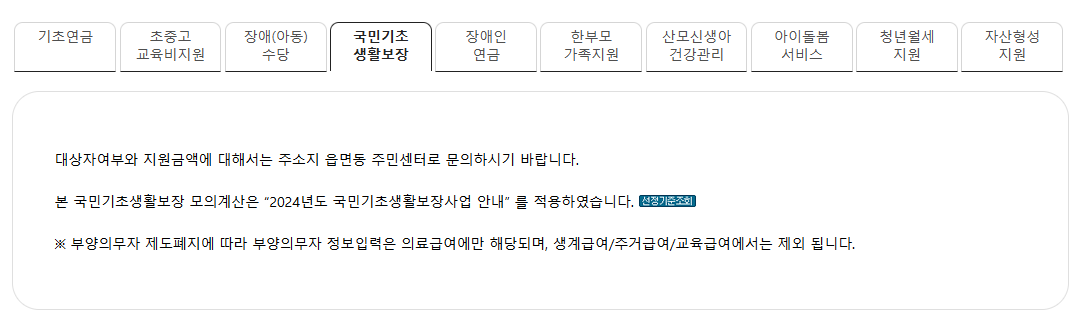 자세한 사항은 보건복지상담센터(129번)에 문의하거나 관할 주민센터에서 확인하시길 권장합니다.