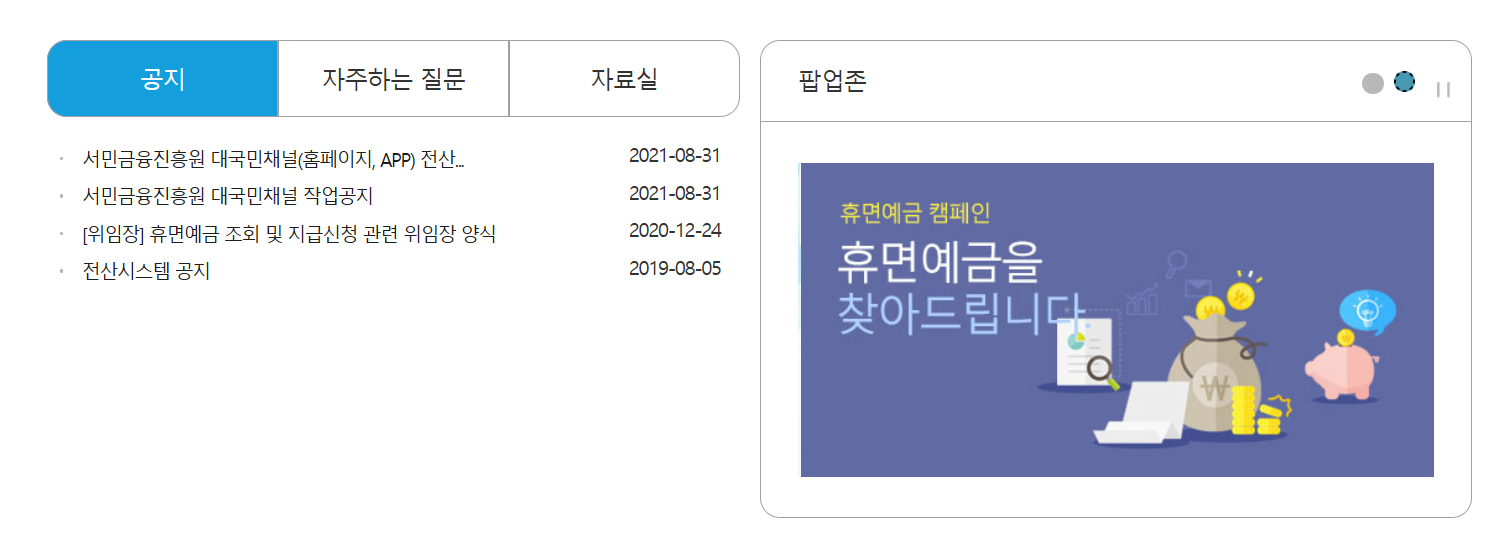 1) 서민금융진흥원 '휴면예금 찾아줌'