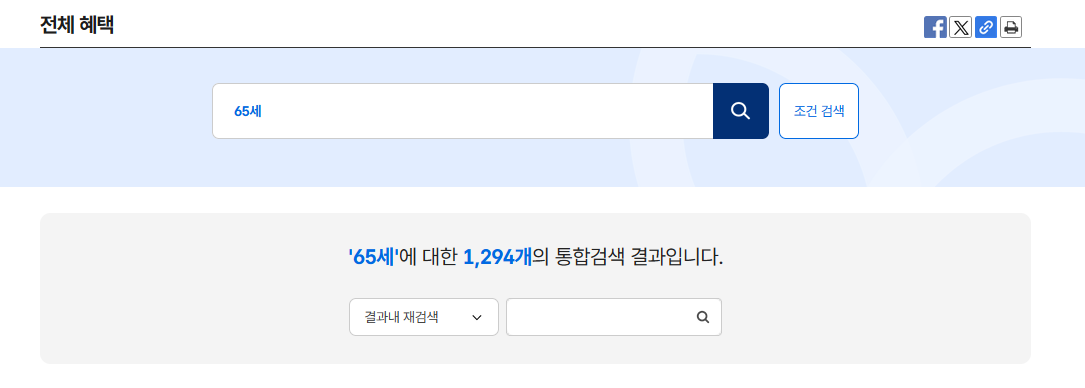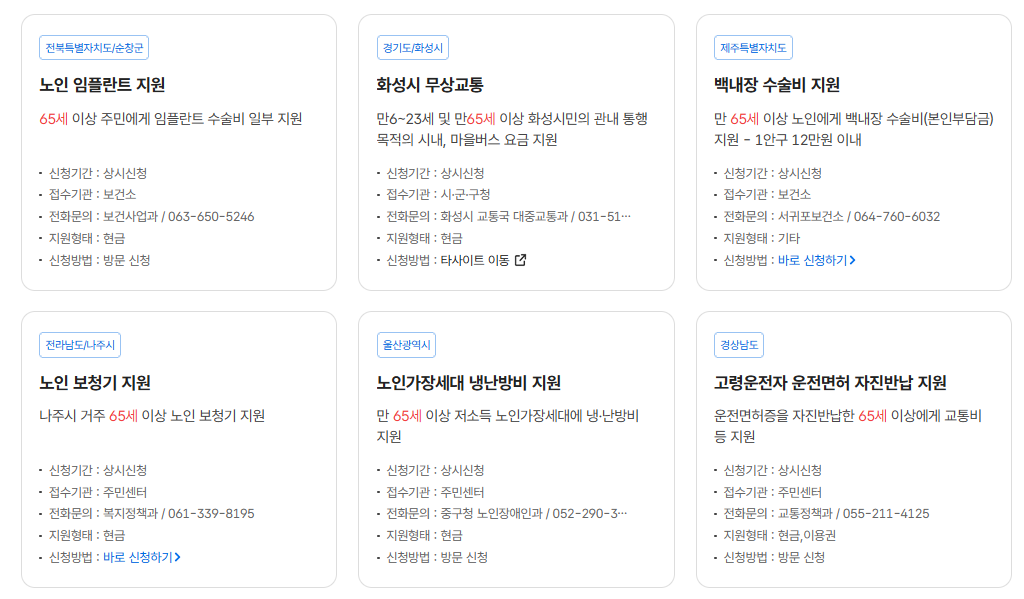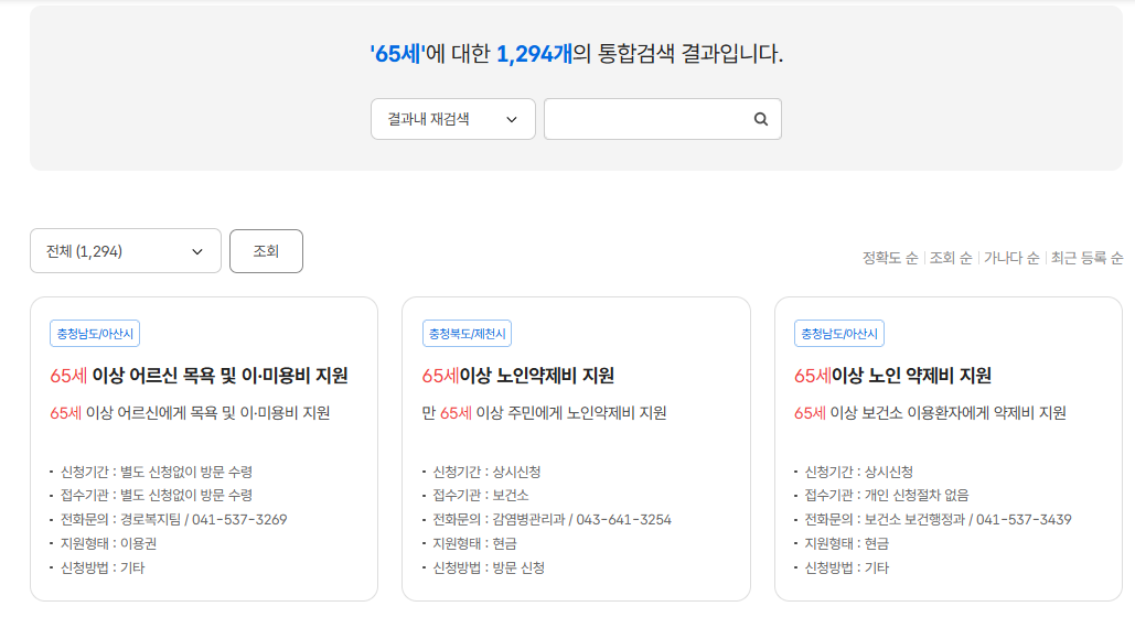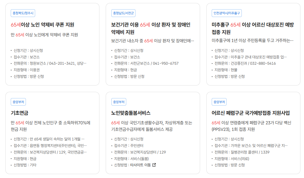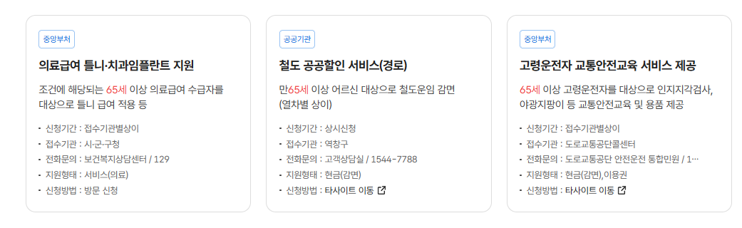 "65세 이상 노인 혜택" 키워드로 검색 신청