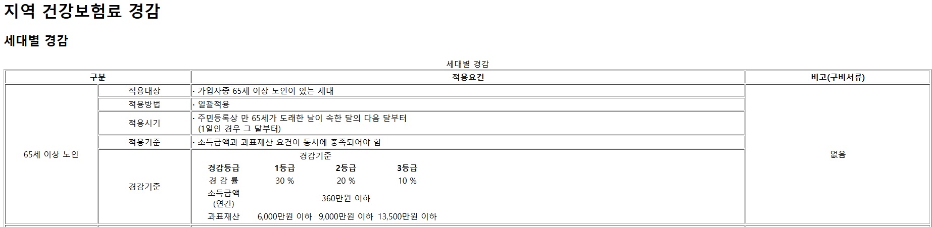 노인들의 경제적 부담을 줄이기 위해 건강료 감면 혜택이 제공됩니다.