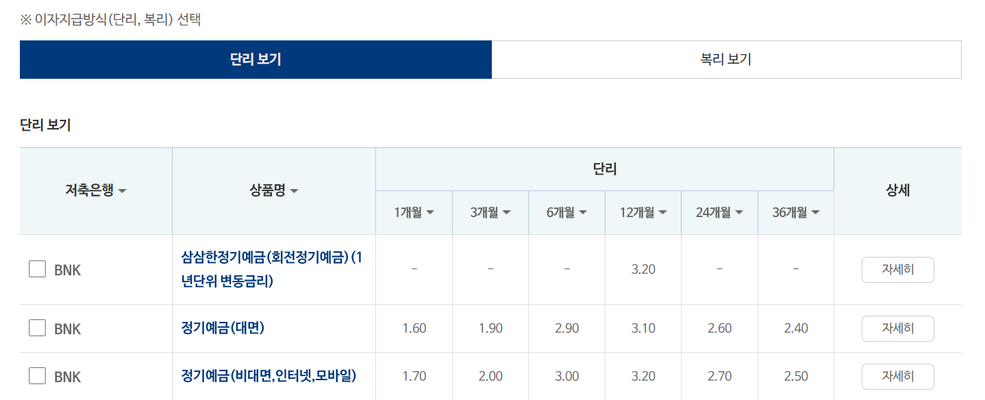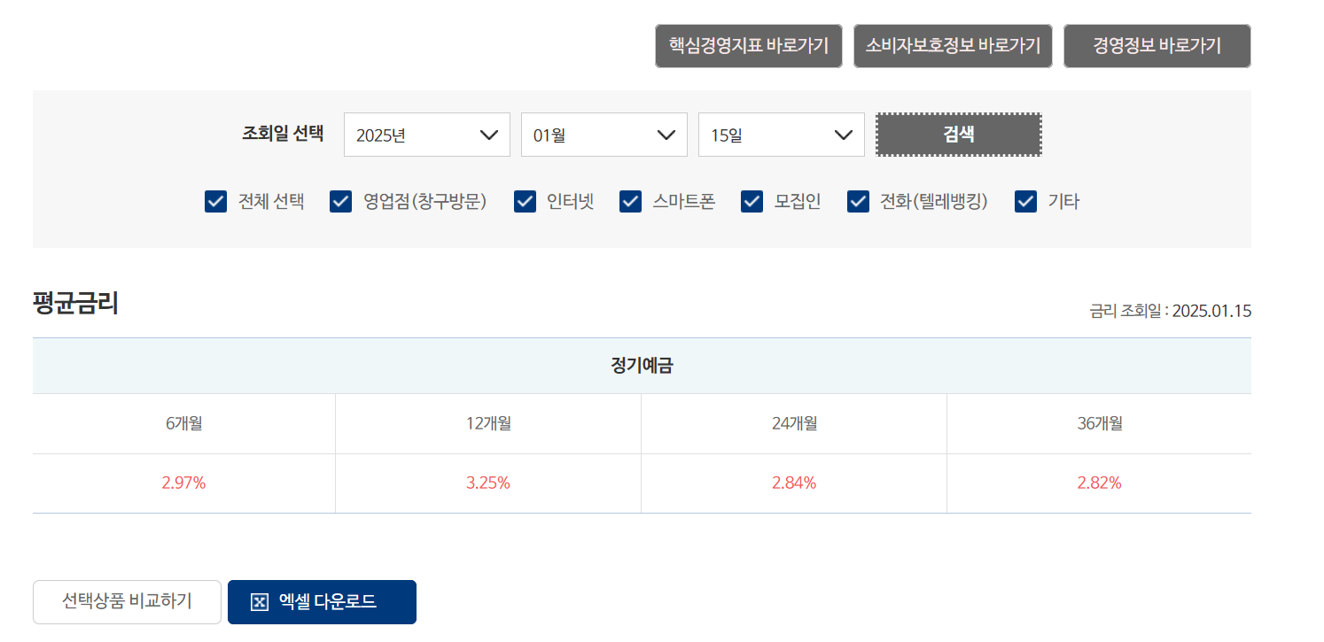 "예금 상품" 또는 "금리 비교" 메뉴를 선택합니다.
