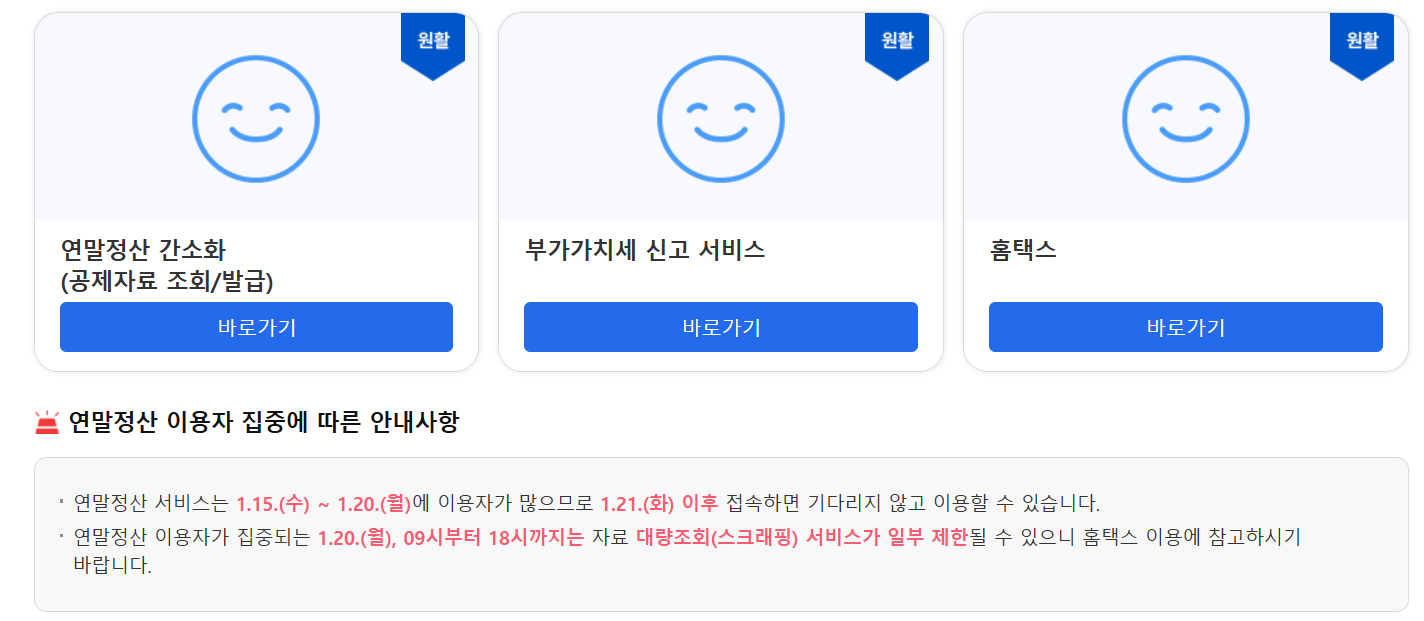 국세청 홈택스 홈페이지에 접속합니다.