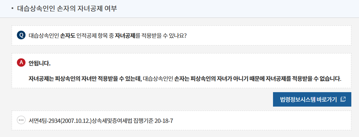 - 직계비속: 자녀, 손자녀 등은 만 20세 이하이어야 합니다.