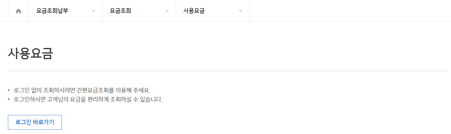 홈페이지의 "요금 조회" 혹은 "고객센터" 메뉴에서 "요금 조회" 항목을 선택합니다.