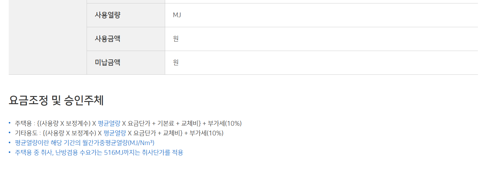 도시가스 요금 = (기본요금) + (사용량 × 단가) + 부가세