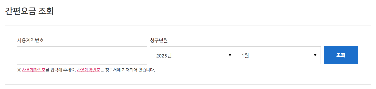 고객번호와 주소 등 계정 정보를 입력하면 최근 요금을 확인할 수 있습니다.