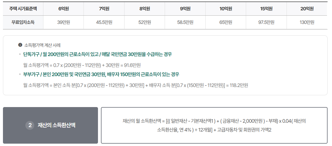 - 금융재산: 공제 후 나머지 금액의 6.26%를 연간 소득으로 환산