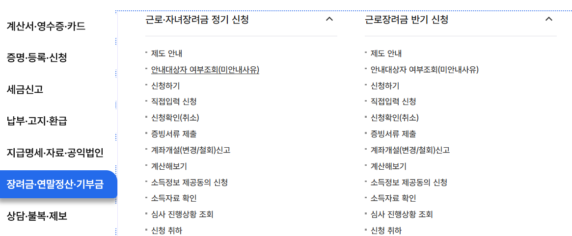 반기 신청은 소득 발생 시점에 따라 지급을 나누어 받는 방식이며, 정기 신청은 연 1회 신청하여 한 번에 받는 방식입니다.