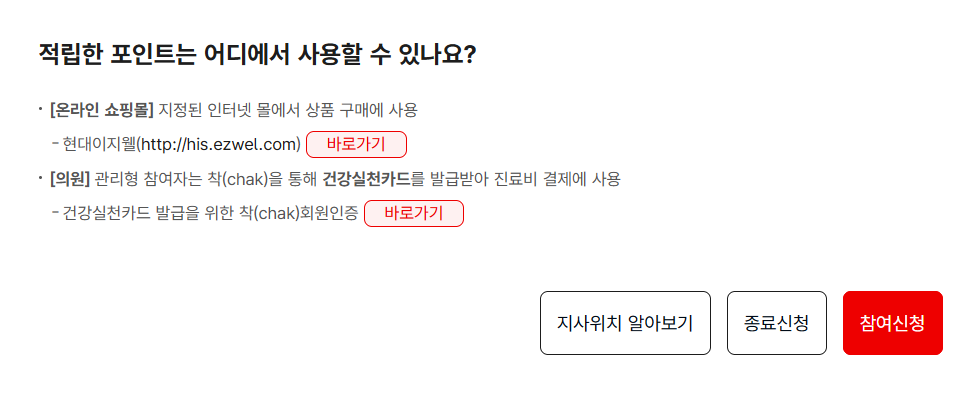 지정된 온라인 쇼핑몰인 현대이지웰(his.ezwel.com)에서 적립한 포인트로 상품을 구매할 수 있습니다.
