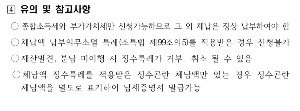 해당 제도는 일시적인 구제제도로, 허위 사실 기재나 고의적 체납에는 적용되지 않습니다. 또한 다음과 같은 사항을 유의해야 합니다.