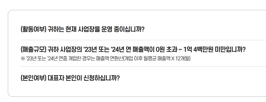 - 2024년 연 매출액이 1억 400만 원 미만인 소상공인