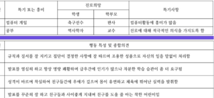 - 일반 생활기록부: 초·중·고등학교 공통 서류.