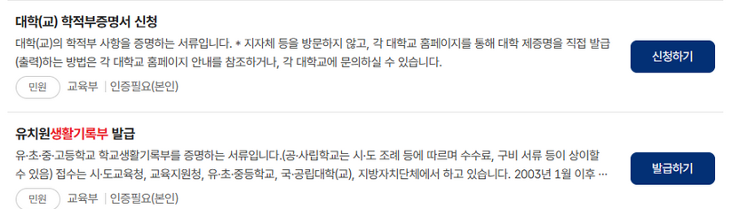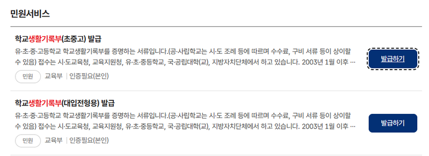- 대입전형용 생활기록부: 대학 입시에 필요한 전용 서류. (2015년 이후 졸업생만 발급 가능)