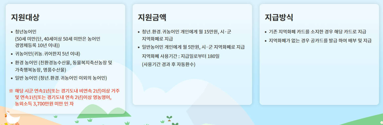 경기도에 거주하면서 농어업에 종사하고 계시다면, 해당 정책에 꼭 관심을 가지고 신청해보시길 권장드립니다. 더 나아가 이러한 제도가 전국적으로 확대되어 우리 농어촌 전체에 활기를 불어넣는 계기가 되기를 바랍니다.
