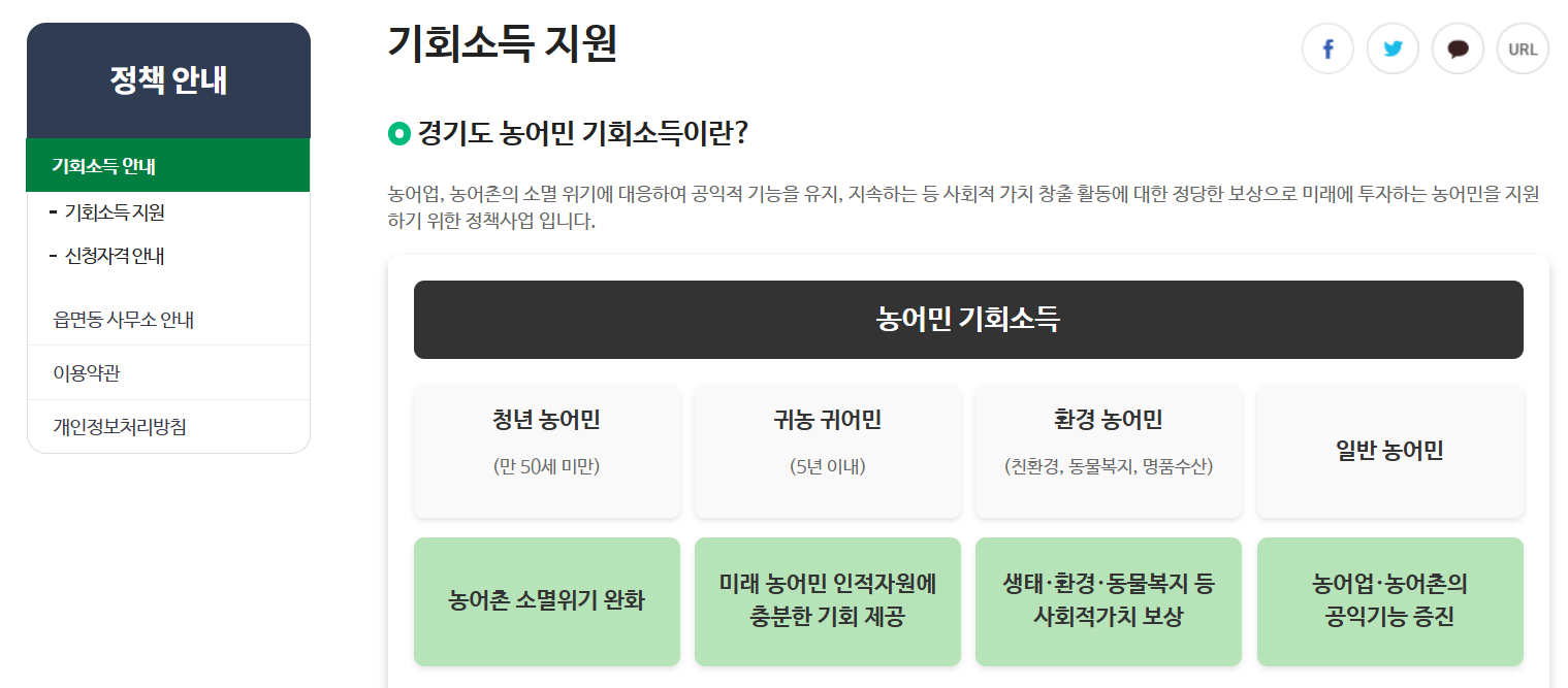 경기도가 전국 최초로 도입한 정책입니다. 농어촌 환경을 지키고, 먹거리의 안전성을 확보하며, 지역 공동체를 유지하는 등 농어업이 수행하는 공익적 역할에 대해 실질적인 가치를 부여하고, 그에 따른 소득을 제공하는 제도입니다.