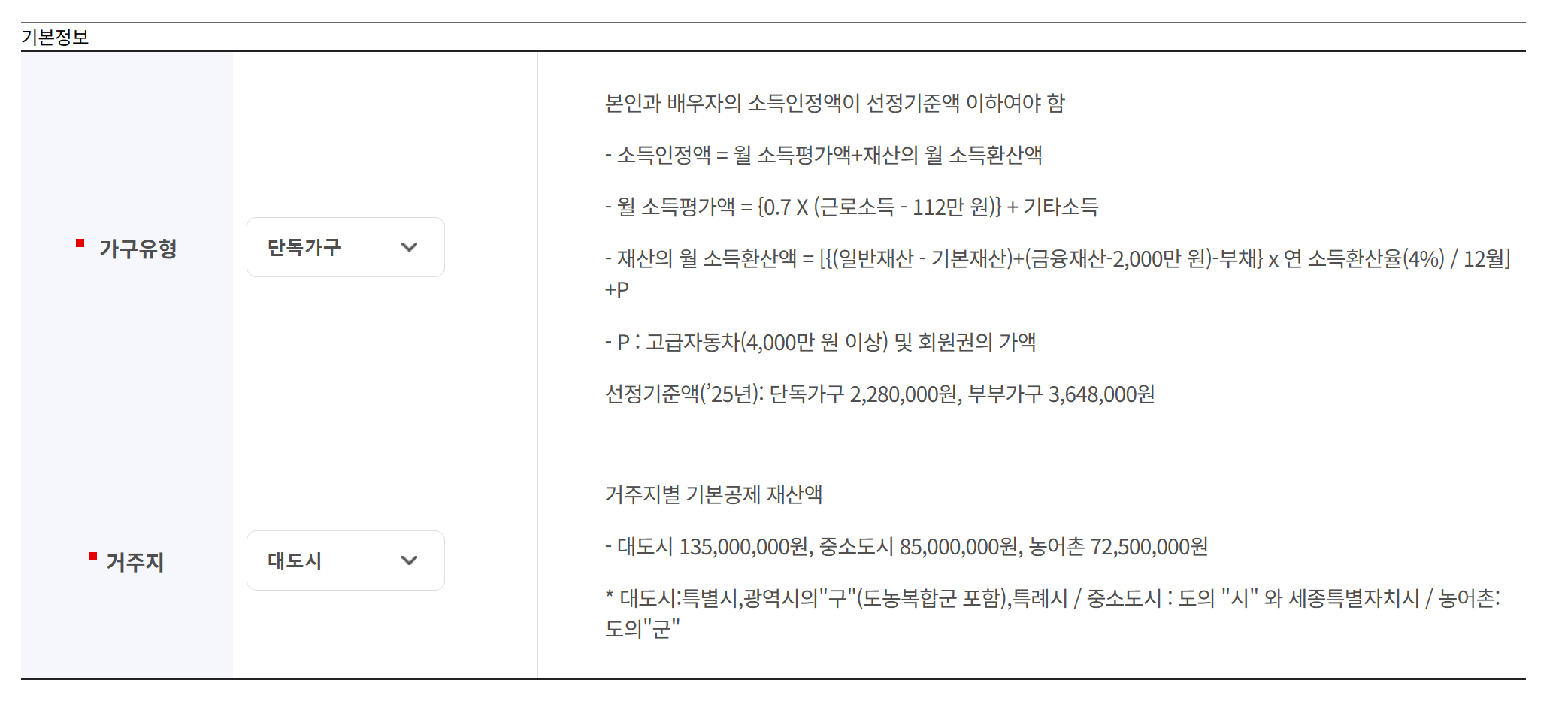 - 부부가구의 경우 배우자 소득·재산·부채까지 합산 입력해야 합니다.