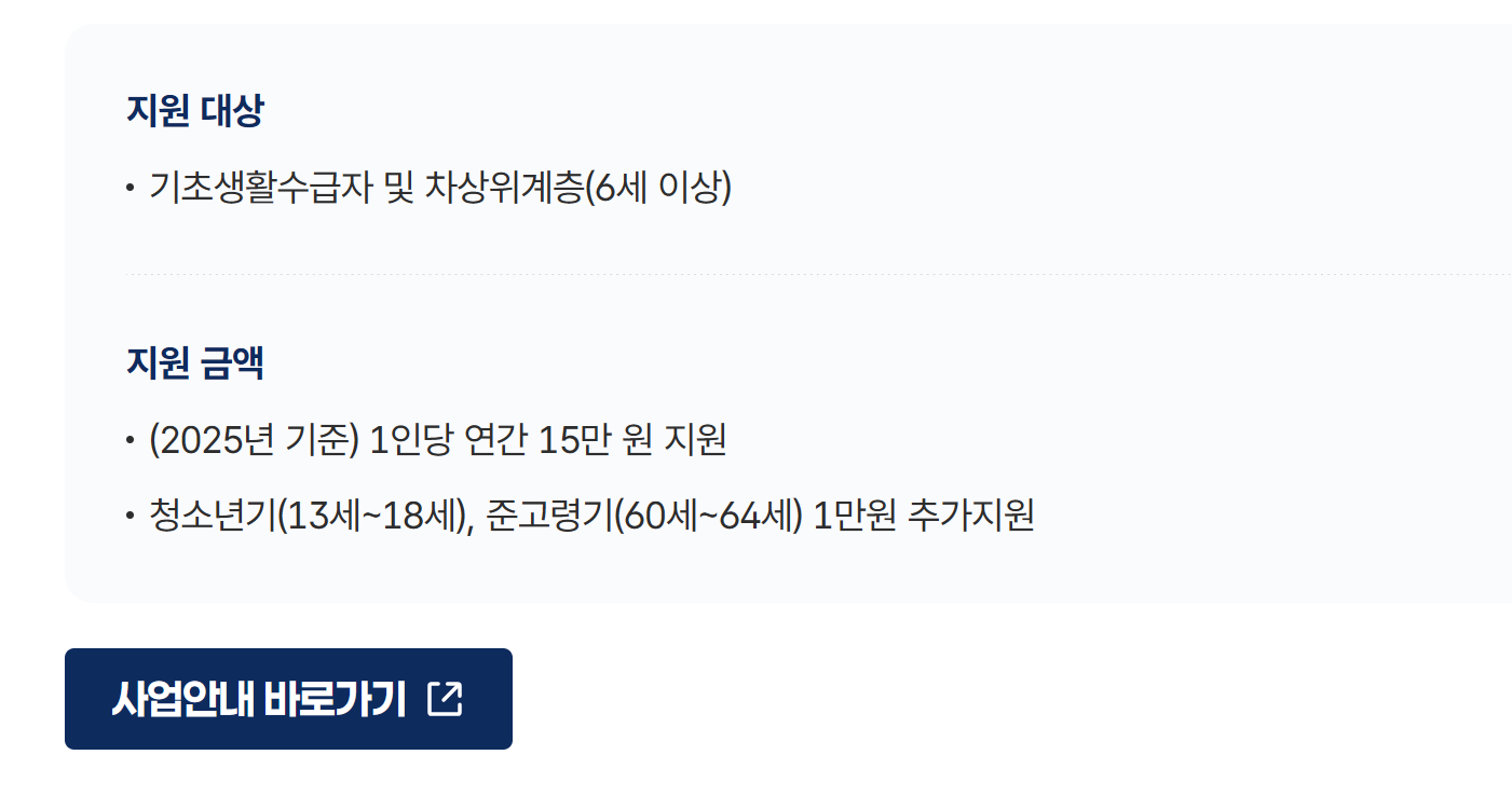 | 지원 금액 | 연간 35만원 지원, 우수 이용자 최대 70만원 |