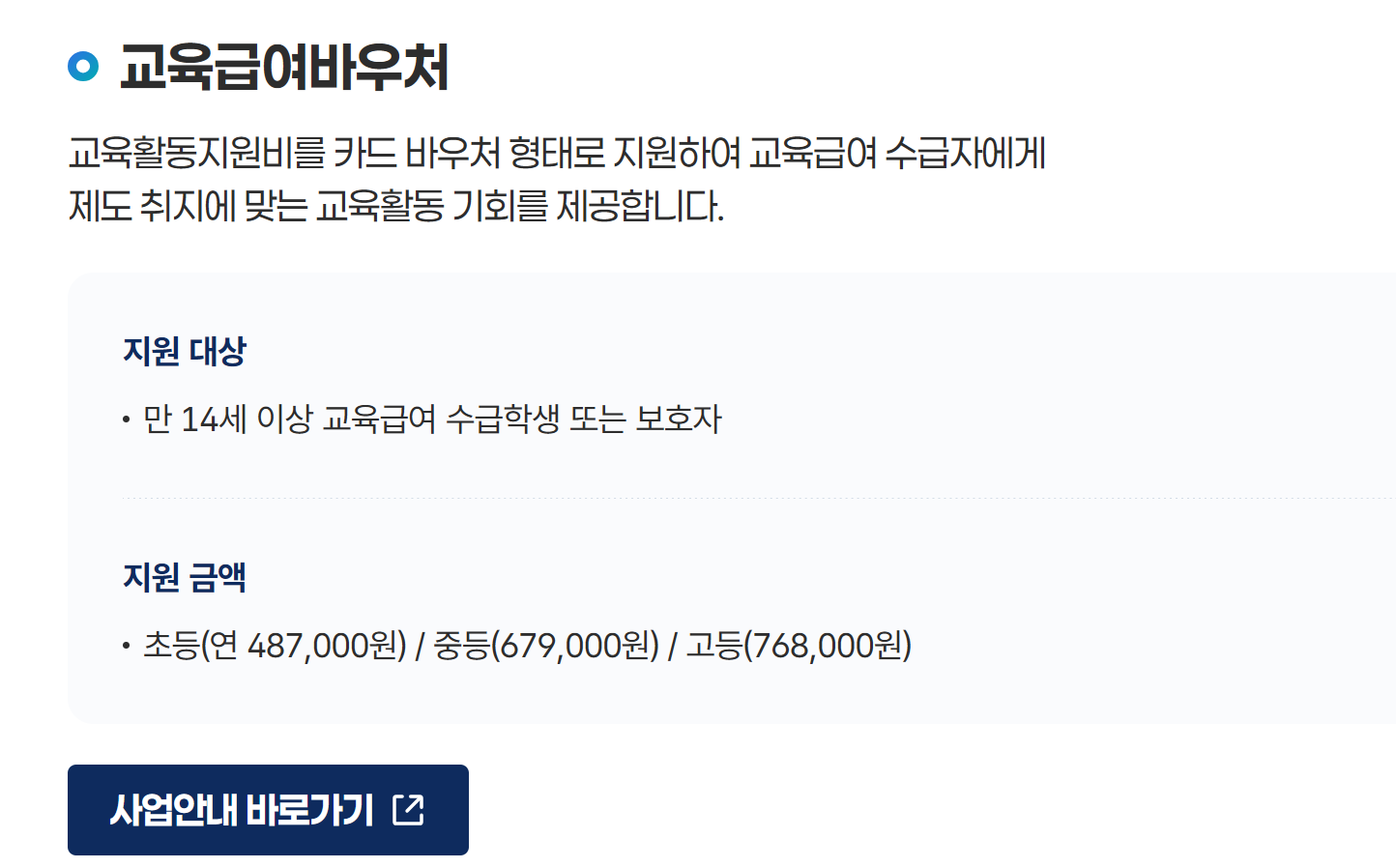 지원 방식은 현금 지급이 아닌 교육비 전용 포인트 형태로 제공되며, 등록된 교육기관에서 수강료와 교재비 결제에 사용할 수 있습니다. 이를 통해 학습 목적 외의 사용을 방지하고 교육 지원의 효과를 높이고 있습니다.